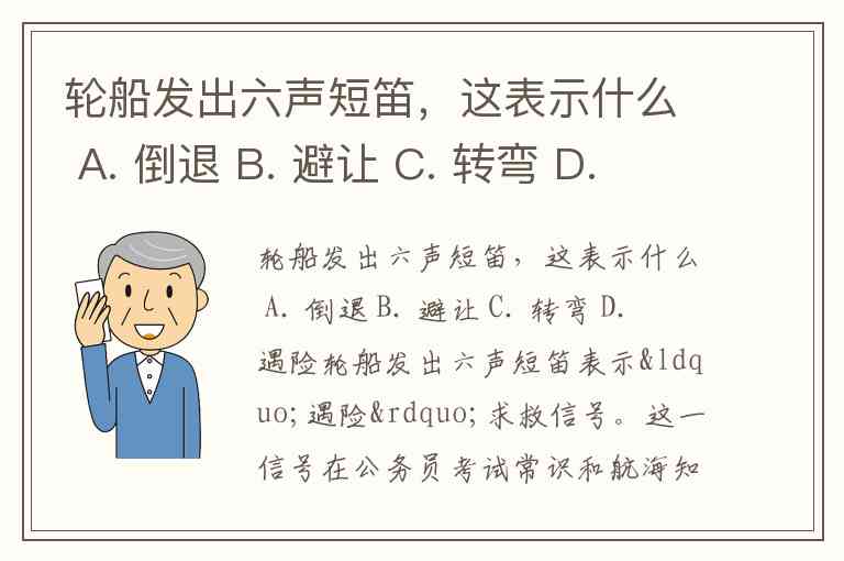 轮船发出六声短笛,这表示什么 A. 倒退 B. 避让 C. 转弯 D. 遇险