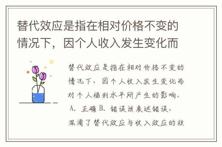 该表述错误,混淆了替代效应与收入效应的核心定义。替代效应的本质是商品相对价格变化引发的消费替代行为,其前提是保持实际收入(或效用水平)不变;而因收入变化导致福利水平变动的是收入效应。