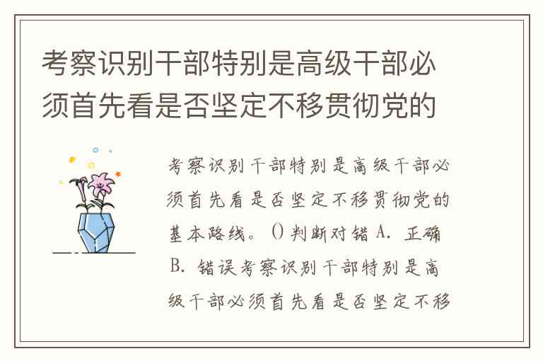 考察识别干部特别是高级干部必须首先看是否坚定不移贯彻党的基本路线。()判断对错 A. 正确 B. 错误