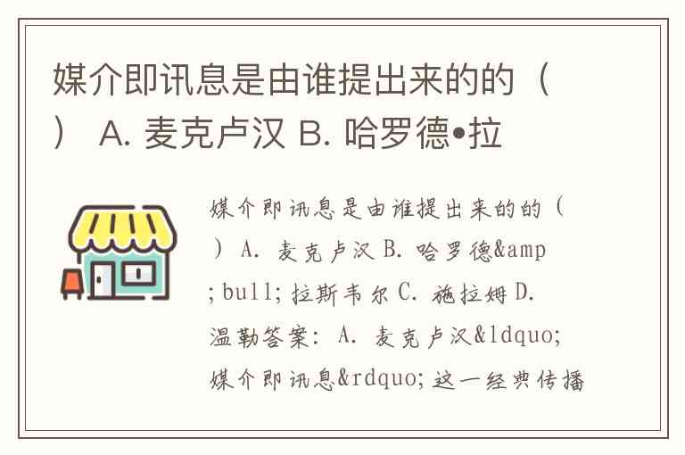 媒介即讯息是由谁提出来的的() A. 麦克卢汉 B. 哈罗德•拉斯韦尔 C. 施拉姆 D. 温勒