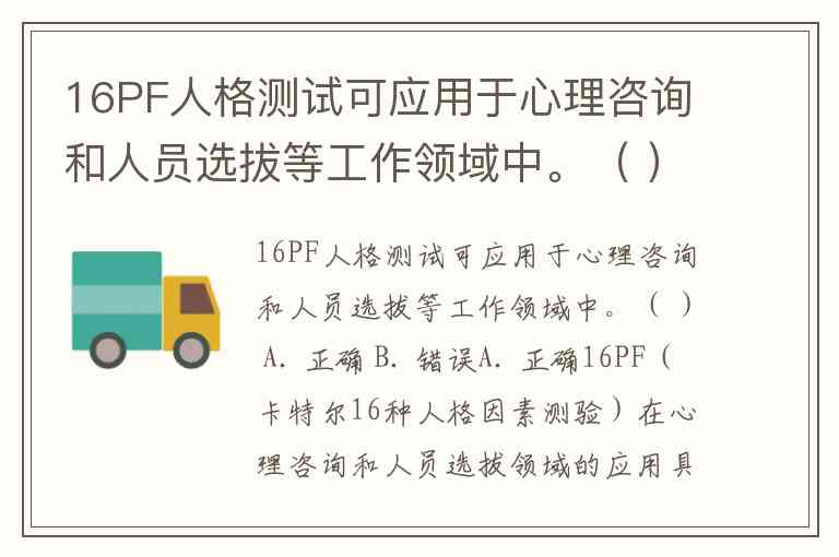 16PF人格测试可应用于心理咨询和人员选拔等工作领域中。( ) A. 正确 B. 错误