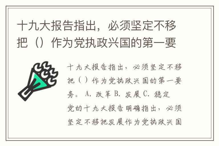 十九大报告指出,必须坚定不移把()作为党执政兴国的第一要务。 A. 改革 B. 发展 C. 稳定