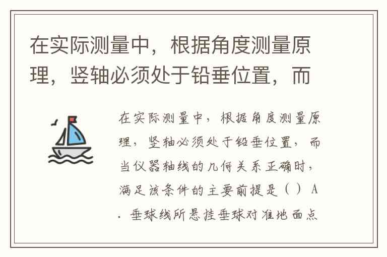 在实际测量中,根据角度测量原理,竖轴必须处于铅垂位置,而当仪器轴线的几何关系正确时,满足该条件的主要前提是() A. 垂球线所悬挂垂球对准地面点 B. 圆水准器气泡居中 C. 光学对中器对准地面点 D. 水准管气泡居中