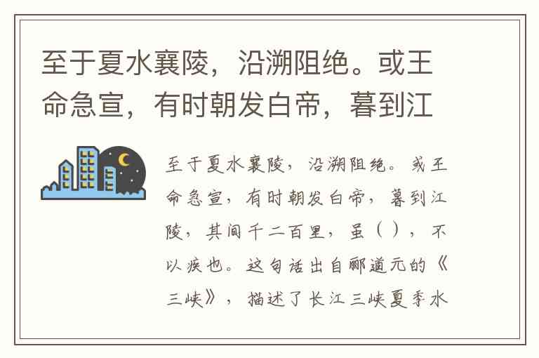 至于夏水襄陵,沿溯阻绝。或王命急宣,有时朝发白帝,暮到江陵,其间千二百里,虽(),不以疾也。