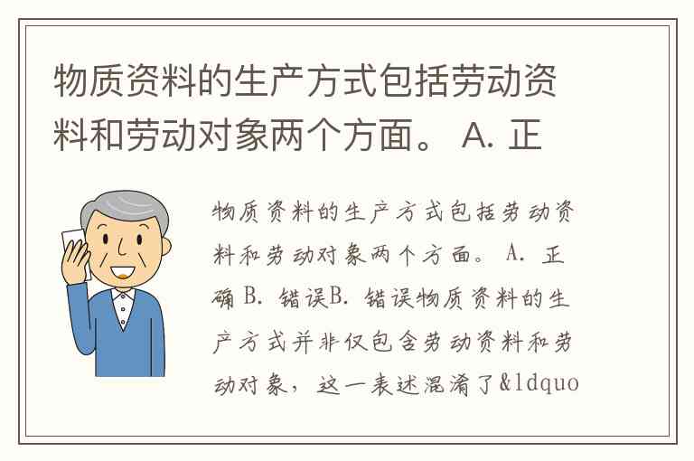 物质资料的生产方式包括劳动资料和劳动对象两个方面。 A. 正确 B. 错误
