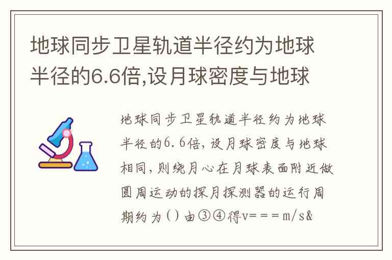 要解决绕月表面探测器的周期问题,需通过万有引力定律与密度公式建立联系。已知地球同步卫星轨道半径为地球半径的6.6倍(周期24小时),且月球与地球密度相同,可推导出星球表面卫星周期仅与密度相关的结论。