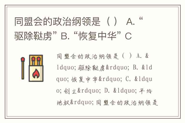 同盟会的政治纲领是( ) A. “驱除鞑虏” B. “恢复中华” C. “创立” D. “平均地权”