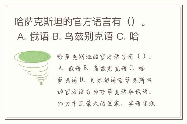 哈萨克斯坦的官方语言有()。 A. 俄语 B. 乌兹别克语 C. 哈萨克语 D. 乌尔都语