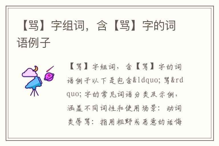 以下是包含“骂”字的常见词语分类及示例,涵盖不同词性和使用场景: