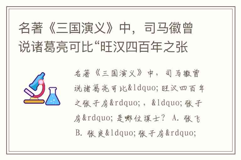 名著《三国演义》中,司马徽曾说诸葛亮可比“旺汉四百年之张子房”,“张子房”是哪位谋士? A. 张飞 B. 张良