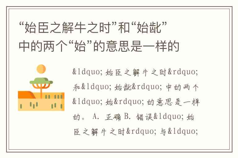 “始臣之解牛之时”和“始龀”中的两个“始”的意思是一样的。 A. 正确 B. 错误