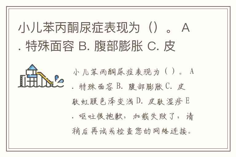 小儿苯丙酮尿症表现为()。 A. 特殊面容 B. 腹部膨胀 C. 皮肤虹膜色泽变浅 D. 皮肤湿疹 E. 呕吐