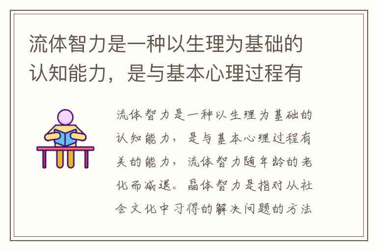 根据定义,晶体智力的核心特征是从社会文化中习得的知识和技能,在实践中形成并随年龄增长而提升;流体智力则以生理为基础,涉及基本心理过程且随年龄减退。