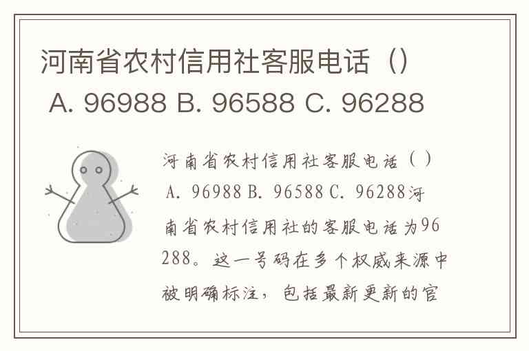 河南省农村信用社客服电话() A. 96988 B. 96588 C. 96288