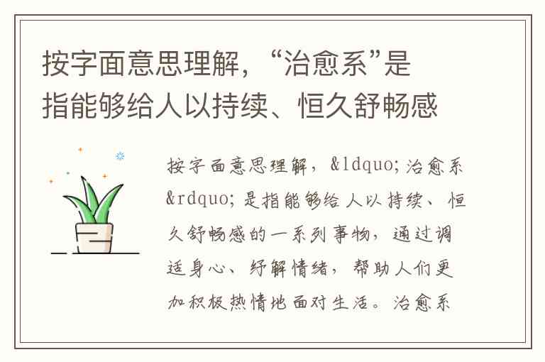这段文字首先阐释了“治愈系”的内涵——通过调适身心、纾解情绪带来持久舒畅感的事物;随后分析其外延,包括流行的社会根源(青年群体对美好生活的高层次向往)、具体表现(青年调整心态的方式、商家的创意产品开发)以及最终形成的生活方式(消费文化与个性需求契合的产物)。整体围绕治愈系文化的核心定义与延伸表现展开。