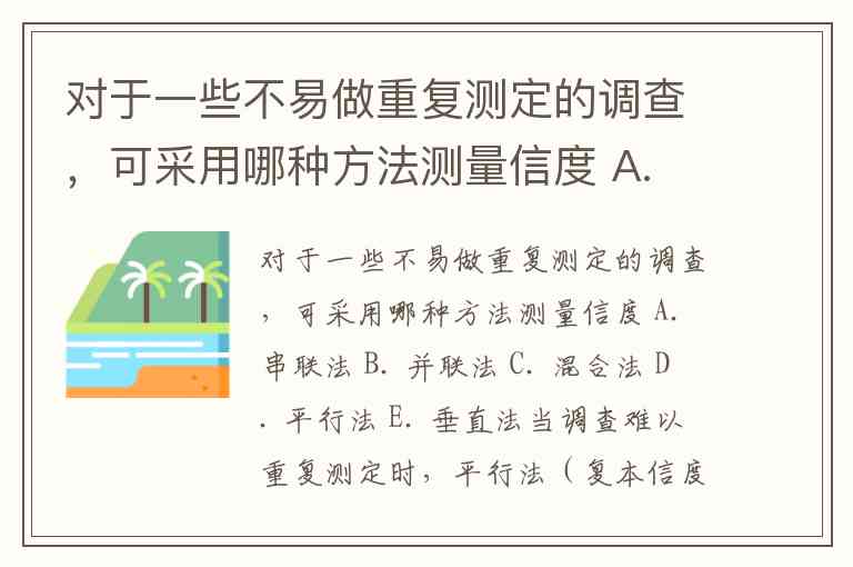 对于一些不易做重复测定的调查,可采用哪种方法测量信度 A. 串联法 B. 并联法 C. 混合法 D. 平行法 E. 垂直法