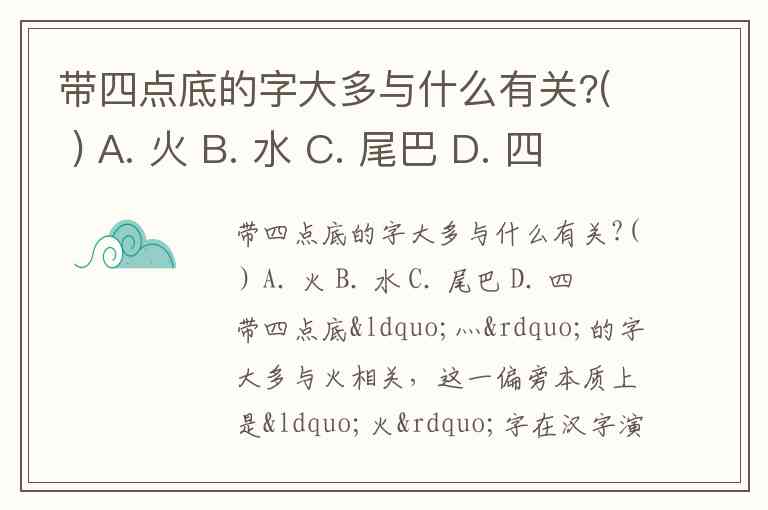 带四点底的字大多与什么有关?( ) A. 火 B. 水 C. 尾巴 D. 四