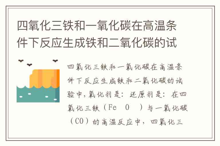 四氧化三铁和一氧化碳在高温条件下反应生成铁和二氧化碳的试验中,氧化剂是:还原剂是: