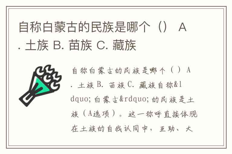 自称白蒙古的民族是哪个() A. 土族 B. 苗族 C. 藏族