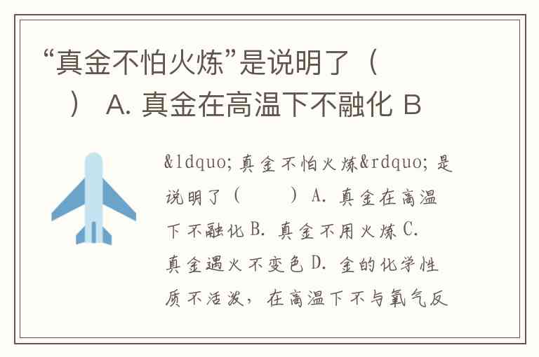 “真金不怕火炼”是说明了( ) A. 真金在高温下不融化 B. 真金不用火炼 C. 真金遇火不变色 D. 金的化学性质不活泼,在高温下不与氧气反应