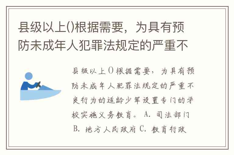 县级以上()根据需要,为具有预防未成年人犯罪法规定的严重不良行为的适龄少军设置专门的学校实施义务教育。 A. 司法部门 B. 地方人民政府 C. 教育行政部门 D. 公安部门
