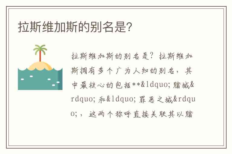 拉斯维加斯拥有多个广为人知的别名,其中最核心的包括**“赌城”和“罪恶之城”,这两个称呼直接关联其以赌博业为核心的城市特色。此外,它还被称为“世界娱乐之都”和“结婚之都”**,前者体现其集购物、美食、夜生活于一体的综合娱乐产业,后者则源于其便捷的结婚登记服务吸引全球情侣。从语言简称来看,英语中常用“Vegas”指代,中文里也有“拉城”的简称。