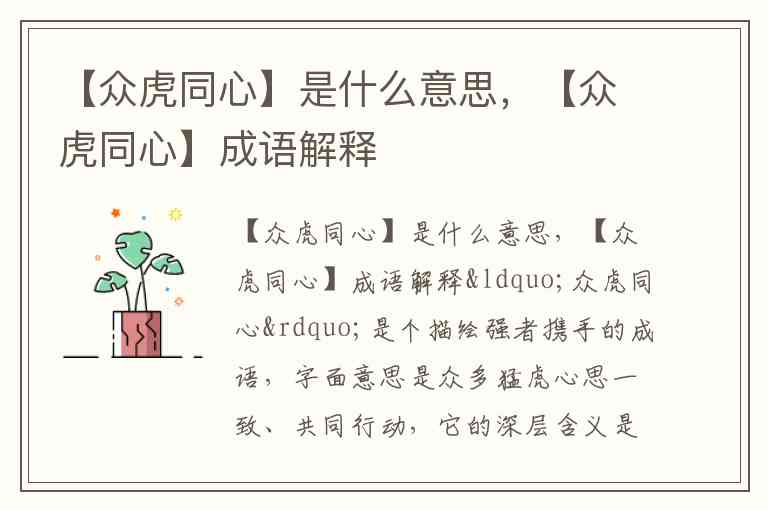 【众虎同心】是什么意思,【众虎同心】成语解释