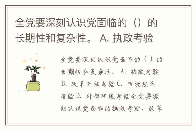 全党要深刻认识党面临的()的长期性和复杂性。 A. 执政考验 B. 改革开放考验 C. 市场经济考验 D. 外部环境考验