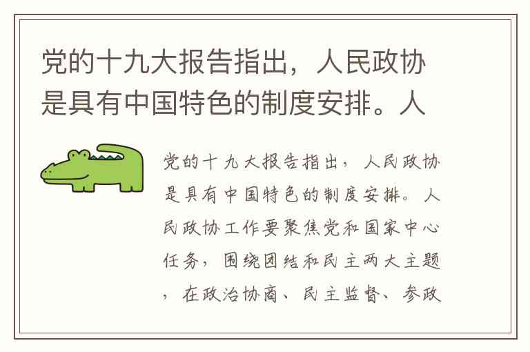 党的十九大报告中关于人民政协“聚焦党和国家中心任务,围绕团结和民主两大主题,在政治协商、民主监督、参政议政全过程中增进共识”的表述,集中体现了协商民主这一社会主义民主形式。作为中国共产党领导的多党合作和政治协商的重要机构,人民政协是社会主义协商民主的“重要渠道和专门协商机构”,其运作机制直接反映了“有事好商量、众人的事情由众人商量”的民主真谛。