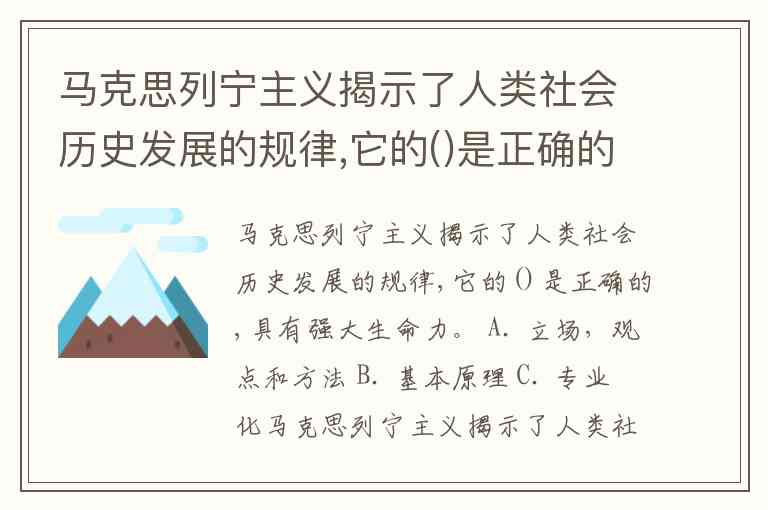 马克思列宁主义揭示了人类社会历史发展的规律,它的()是正确的,具有强大生命力。 A. 立场,观点和方法 B. 基本原理 C. 专业化