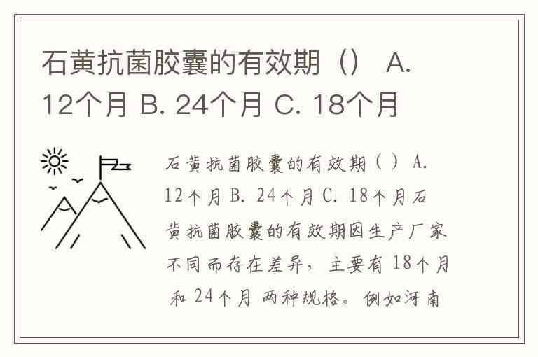 石黄抗菌胶囊的有效期() A. 12个月 B. 24个月 C. 18个月