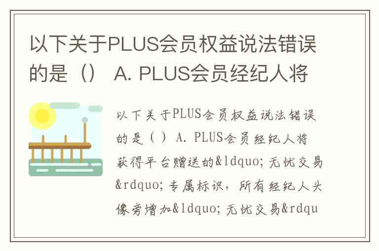 A正确:PLUS会员经纪人将获得平台赠送的“无忧交易”专属标识,显示于头像旁、微聊界面及列表页等场景。