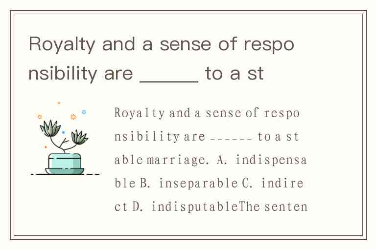 Royalty and a sense of responsibility are ______ to a stable marriage. A. indispensable B. inseparable C. indirect D. indisputable