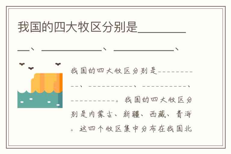 我国的四大牧区分别是内蒙古、新疆、西藏、青海。这四个牧区集中分布在我国北方和西部的非季风区,年降水量均在400mm以下,拥有广阔的天然草原。作为我国畜牧业的核心区域,它们在全国草原面积中占据重要地位——内蒙古、新疆、西藏、青海与甘肃、四川共同构成的六大牧区省份,草原面积达2.93亿公顷,约占全国草原总面积的四分之三。