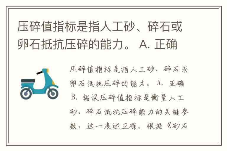 压碎值指标是指人工砂、碎石或卵石抵抗压碎的能力。 A. 正确 B. 错误