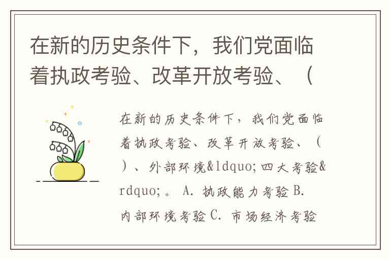 在新的历史条件下,我们党面临着执政考验、改革开放考验、()、外部环境“四大考验”。 A. 执政能力考验 B. 内部环境考验 C. 市场经济考验