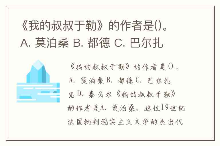 《我的叔叔于勒》的作者是()。 A. 莫泊桑 B. 都德 C. 巴尔扎克 D. 泰戈尔