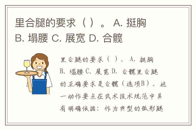 里合腿的要求( )。 A. 挺胸 B. 塌腰 C. 展宽 D. 合髋