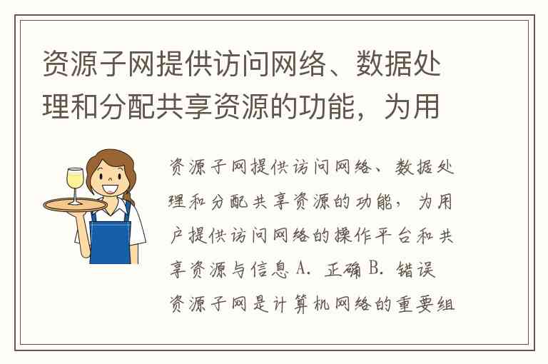 资源子网提供访问网络、数据处理和分配共享资源的功能,为用户提供访问网络的操作平台和共享资源与信息 A. 正确 B. 错误