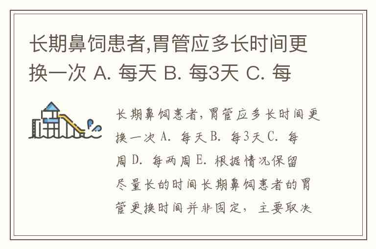 长期鼻饲患者,胃管应多长时间更换一次 A. 每天 B. 每3天 C. 每周 D. 每两周 E. 根据情况保留尽量长的时间