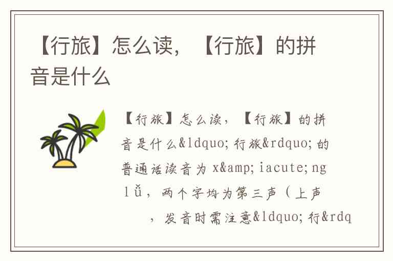 “行旅”的普通话读音为 xíng lǚ,两个字均为第三声(上声),发音时需注意“行”在此处不读háng(如“银行”)或xìng(如“高兴”)。