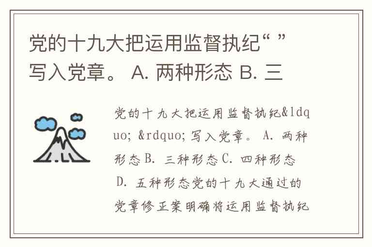 党的十九大把运用监督执纪“ ”写入党章。 A. 两种形态 B. 三种形态 C. 四种形态 D. 五种形态