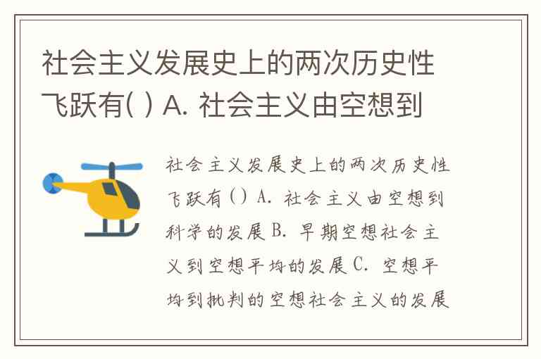 社会主义发展史上的两次历史性飞跃有( ) A. 社会主义由空想到科学的发展 B. 早期空想社会主义到空想平均的发展 C. 空想平均到批判的空想社会主义的发展 D. 社会主义由理论到实践