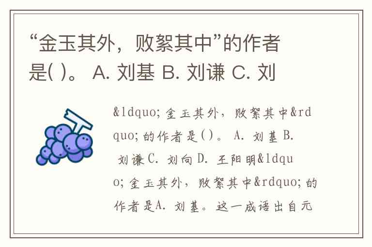 “金玉其外,败絮其中”的作者是( )。 A. 刘基 B. 刘谦 C. 刘向 D. 王阳明