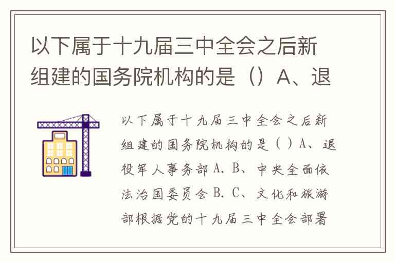 以下属于十九届三中全会之后新组建的国务院机构的是()A、退役军人事务部 A. B、中央全面依法治国委员会 B. C、文化和旅游部