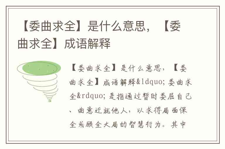 【委曲求全】是什么意思,【委曲求全】成语解释