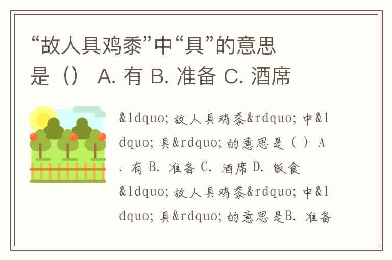 “故人具鸡黍”中“具”的意思是() A. 有 B. 准备 C. 酒席 D. 饭食