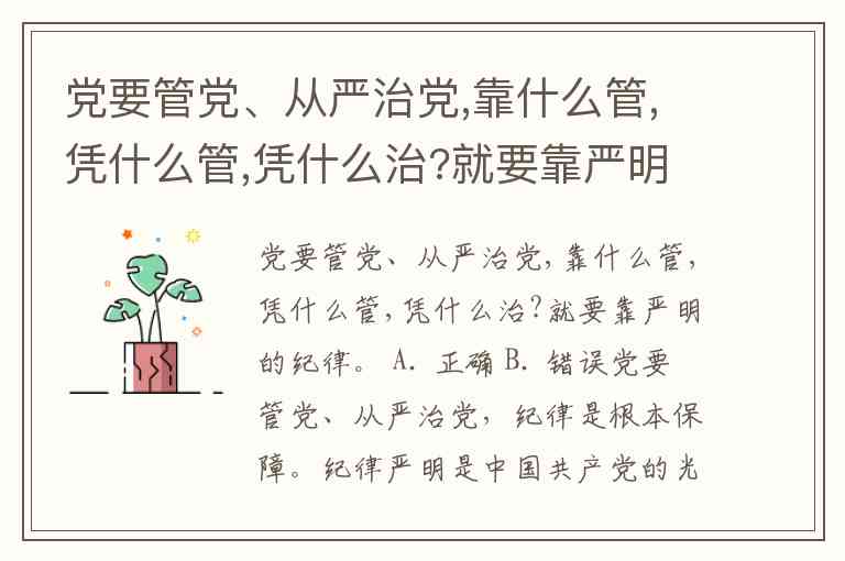 党要管党、从严治党,靠什么管,凭什么管,凭什么治?就要靠严明的纪律。 A. 正确 B. 错误