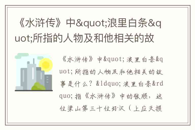 《水浒传》中"浪里白条"所指的人物及和他相关的故事是什么?