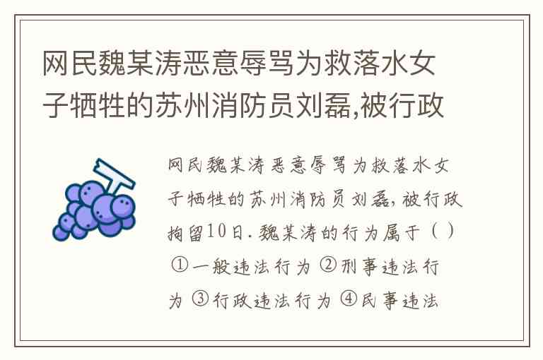 网民魏某涛恶意辱骂为救落水女子牺牲的苏州消防员刘磊,被行政拘留10日.魏某涛的行为属于() ①一般违法行为 ②刑事违法行为 ③行政违法行为 ④民事违法行为 A. ①② B. ②③ C. ①③ D. ③④
